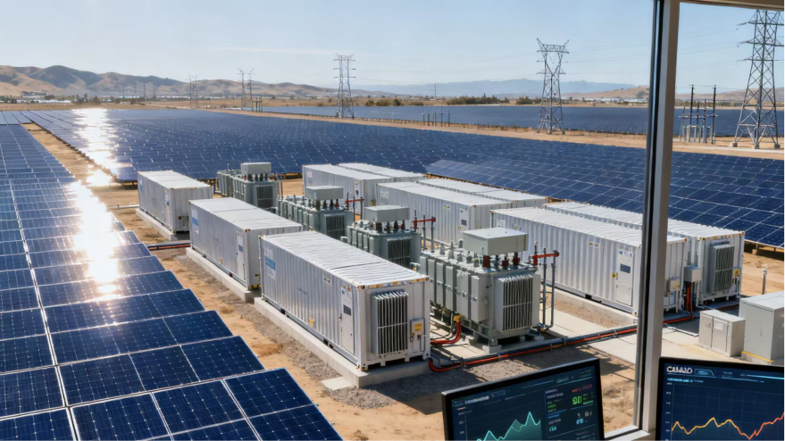Hybrid PV and BESS project with grid tie-in and SCADA control.